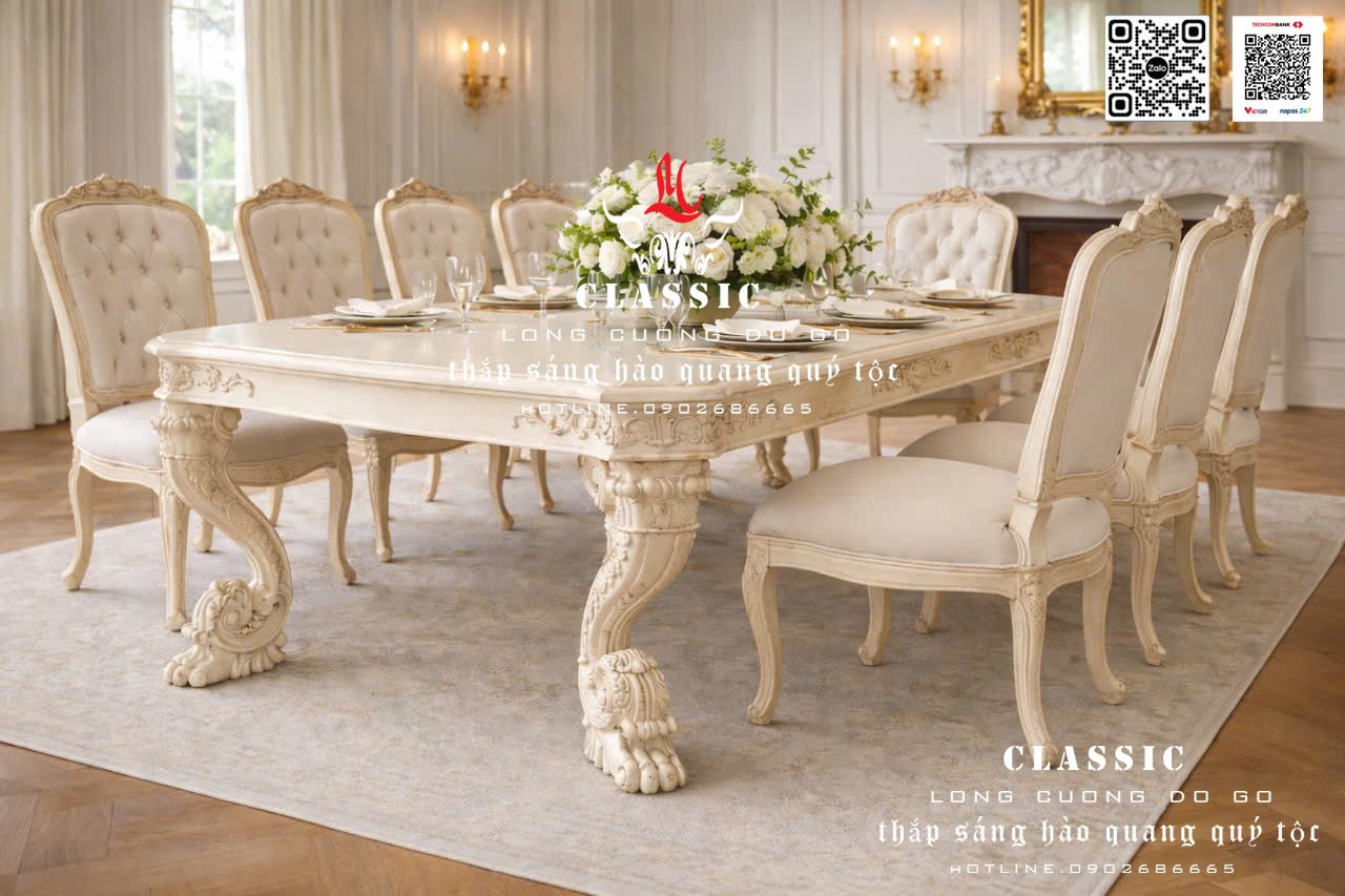 ms 04 - bàn ăn cổ điển châu âu