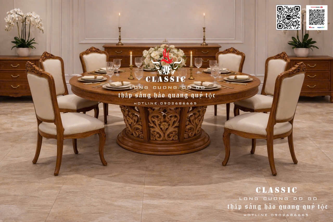 ms 08 - bàn ăn cổ điển